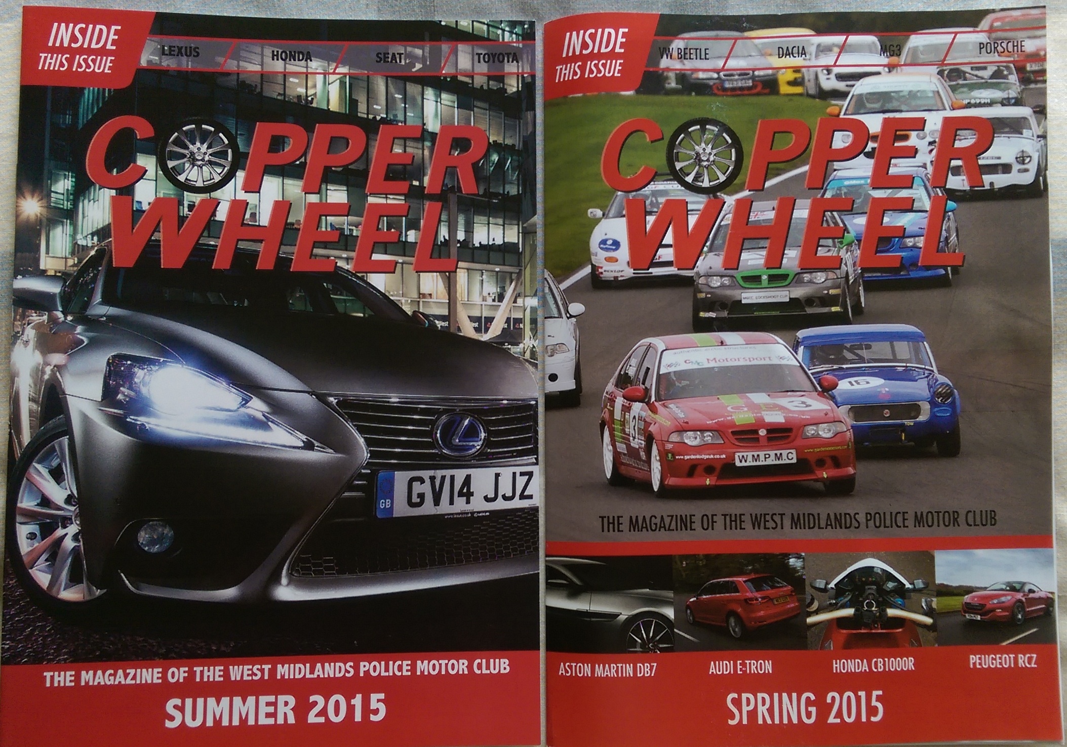 Copperwheel Magazine. The Magazine has again been published with a new format for 2017. Editions for the year 2017 are now in circulation. Club Members should be receiving their copies by post now or in the not too distant future. We would like to thank Bob Hickman, Magazine editor, for his tenacity and plain stubbornness in not giving up in his work to produce the magazine with it's contents and design. Bob has had a difficult period where publishers who have let him down and just not produced the Mag. For all of you that are interested Unity Print Ltd produce the Magazine and the cost of producing it free to our members and colleagues is covered by the sale of advertising space within the magazine. Please note the advertising space is purchased from Unity Print Ltd and not from the West Midlands Motor Club Please note that Bob is also the Editor of Overdrive Magazine the publication of the Federation of British Police Motor Clubs |