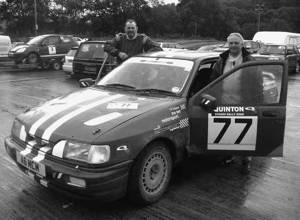 Well, you should never say` never' or that's how the saying goes. Writes “Aitch” Adams. This happened to me recently when I had the offer of returning to rallying as a competitor after a 20-year break from actively competing. Since giving up in-car rallying, I have been involved with an active marshalling team, whose main role is to cover flying finish and stop controls on many rallying events from club up to national level. The team attends some 12 rallies every year to give its support and assistance. I have always had the yearn to return to rallying competitively for at least one last fling, but the thought of such a return has always generated another excuse as to why I shouldn't, the biggest excuse being that I was now well past it and other commitments always took priority. However, a new member to 'Quinton Motor Club' Rob Belt was certainly keen on getting involved in rallying as a competitor. There were regular discussions on club nights between other club members and Rob, all suggested the best type of car Rob should invest in for his events, these ranged from Peugeot 205, Subaru, Focus and MK11 Group 4 Escorts (very expensive). Finally Rob surprised all of us at a club night when he confirmed his new rally car acquisition was a Ford Sierra Cosworth 4 x 4. Rob, who had never actually competed on a rally before, apart from taking his B.A.R's award and a having a practice day at the 'Phil Price Rally School' in Mid Wales was now very keen to go and compete on an event, however, Rob needed a co-driver; the question was posed, would I be interested in taking on this role. With such an opportunity how could I refuse, but uncertainty of getting back into rallying needed some thought. After some weeks of consideration I did finally agree for one event only. Now committed to role of co-driver I suddenly realised that I would seriously have to get down to studying and refreshing my memory on a co-drivers duties including, timing, route notes and general duties of a co-driver/navigator. The other all-important thing that needed careful consideration was overalls and helmet. I keenly got out my overalls from 20 years ago and tried them on; unfortunately they fitted a little too snugly, and as standards have changed over the time I had no choice but to invest in a new set along with a new shiny helmet. I was now ready for the experience, now it was the turn to get the car its all-important check over. This was put in the capable hands of the 'Motor sport Students' at Sandwell College Oldbury West Midlands who had offered to carry out any necessary work. The Sierra Cosworth had quite a degree of work undertaken, including, fitting of a new clutch assembly (not easy on a Cosworth 4 x 4), suspension overhaul, resetting steering geometry and a general spanner check. It's thanks to students including, Steve Griffin, Tim Millington, Jimi Hughes and Gillan Shaw, under the watch full eye of course tutor Nigel Briscoe that all the work required was covered on time and the Sierra Cosworth was ready for its first event the 'Quinton Stages Rally' The day of competition finally arrived; the car had been presented for scrutineering and after some minor problems, which were sorted there and then, all the safety checks on the car were finally completed and we were clear to take our place in the start line up. We had been allocated competition position of number 77 so would be running almost at the back of the field, well you have to start somewhere! I had real trepidation of whether I could cope with all the responsibility of guiding Rob around the 'Quinton Stages Rally', but all the route notes had been drafted and the road book studied at great length. The rally timing however, which are critical on such an event was still one of my biggest concerns and I was sure this would be one area that would cause a major problem. The time came to leave the rally start at Llandovery and to proceed to the first stage of 'Halfway forest'; we managed to arrive on time and awaited in-line to start the first special stage. Once on the start line the time card was signed the traffic lights had changed to green and we were off. Everything was going well, until I became lost on the pace/route notes, so drawing on past experience we reverted to hand signals during the remainder of the stage. The next job was to get through the rest of the event without any recurrence of pace note problems and to finish the event in one piece. The day's competition went very well and we had a good run on all of the special stages, despite the weather, which closed in during the day and heavy rain made the remaining stages very slippery, rough and rutted in places. Rob drove extremely well on all the stages without problems. We finished the event with 63rd overall, 6th in class and surprising achieved an award for best 'Quinton Motor Club crew.' Rob had finished his first rally and I had completed my first rally in over 20 years, I certainly enjoyed competing once again and would probably consider another event. The Sierra Cosworth was faultless only requiring basic spanner checks and topping up of engine oil at service. Our thanks go to the service crew, who were Steve, Tim, Jimmi, Gillan and Polly without whom we could not have got the car prepared for this event and the support on the day. Thanks to Quinton Motor Club for putting on an excellent event and to all the many marshals who braved the appalling conditions of the day.